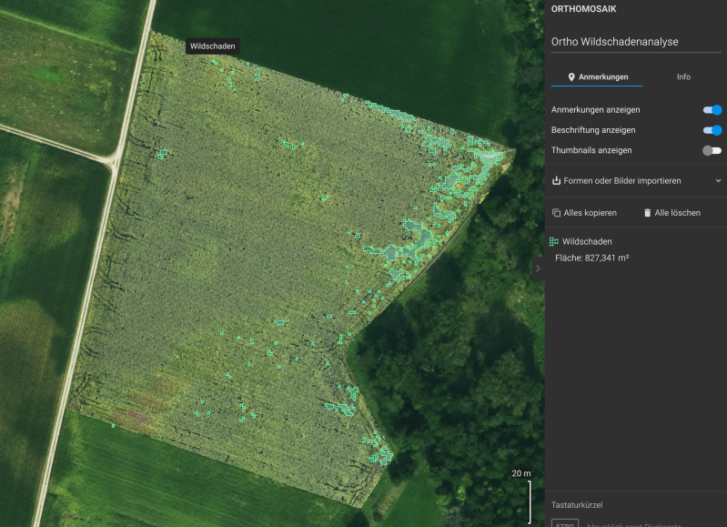 Die erzeugten Karten und Berichte liefern eine klare Entscheidungsgrundlage für Landwirte und Jagdpächter und helfen, Missverständnisse oder Streitigkeiten bei der Schadensregulierung zu vermeiden.